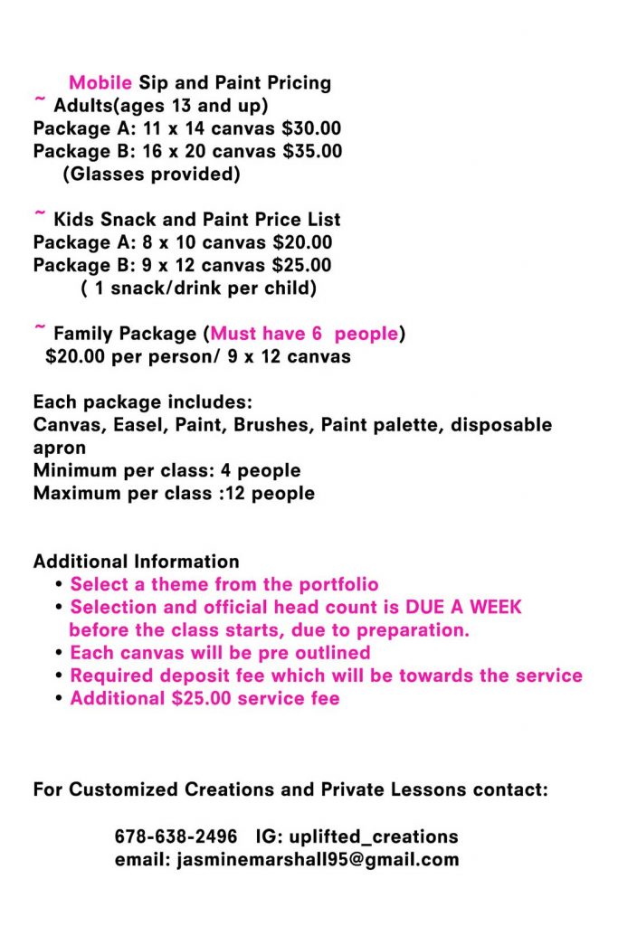 Come Release your inner Picasso w/ Jazzy???? Book me for a Sip&Paint party. Logos. Home Decor. Personalized gifts. Tattoo Drawings.